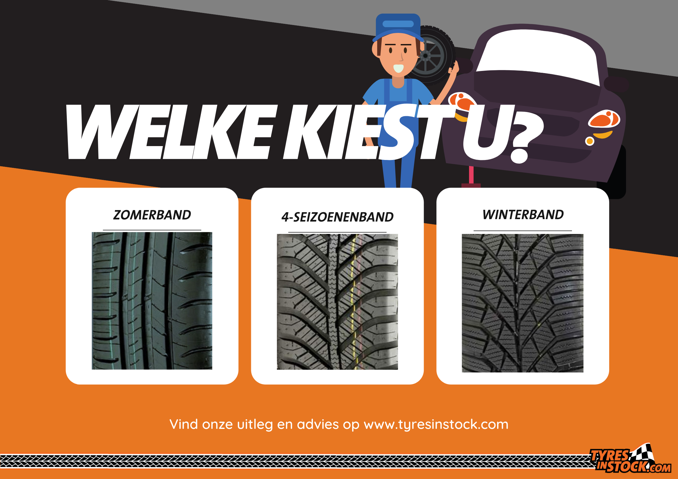 Er zijn drie mogelijkheden: zomerbanden, winterbanden en 4-seizoenenbanden. In dit artikel vertellen we u er meer over!